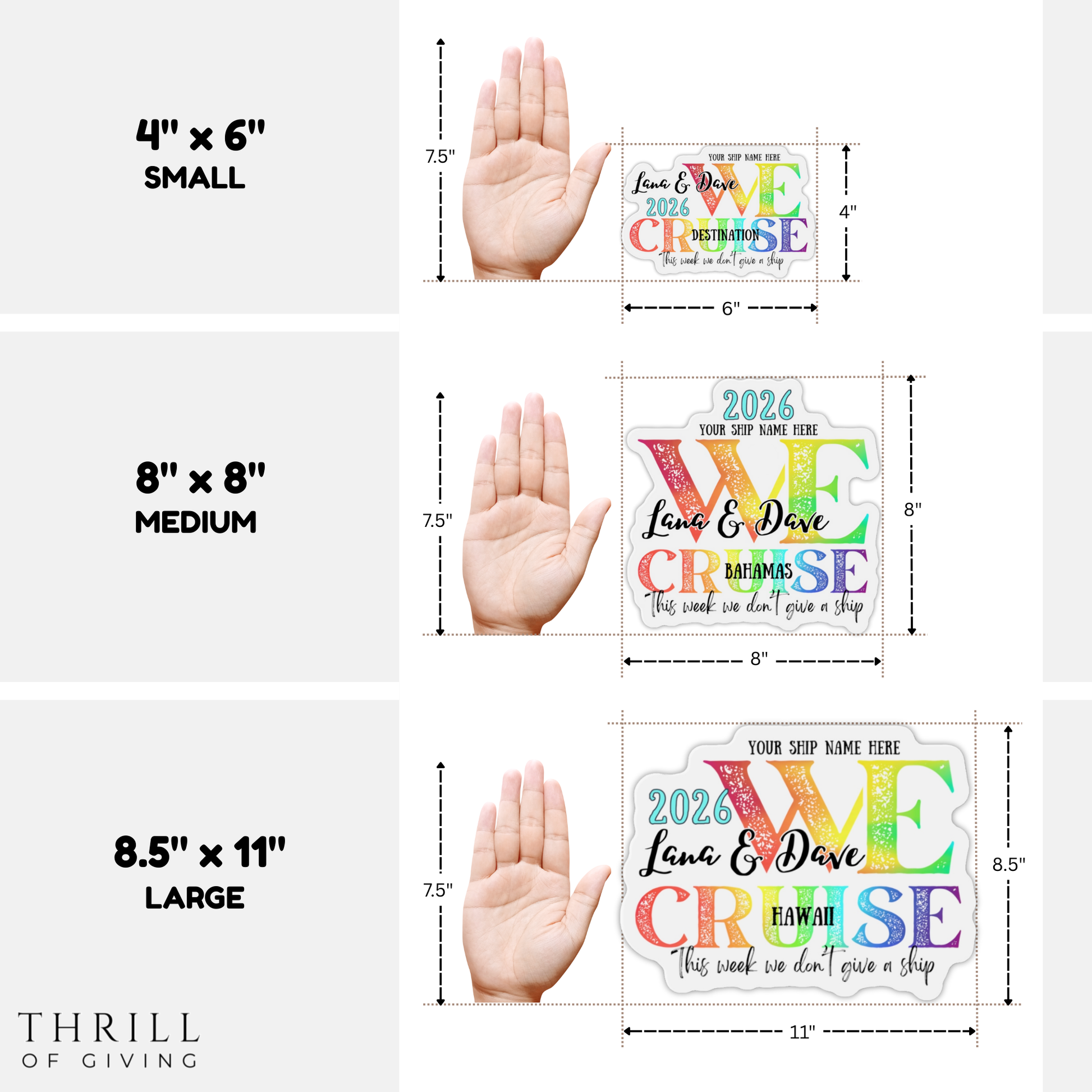 Personalize your cruise with our Cruise door magnets, the perfect door decorations that double as stylish Cruise door décor and practical Cruise door signs. Each personalized magnet is a fun custom magnet—whether you want a funny cruise door magnet, a girls cruise magnet, or even a matching look with your family cruise shirt, making it ideal for an Anniversary celebration, Birthday trip, Retirement cruise, Christmas cruise, Bachelor/ette and Wedding celebrations or any memorable getaway. These versatile picture magnets also make thoughtful cruise gifts, durable enough for your voyage and perfect for home use on the fridge or any metal surface. Feel free to message us for any additional alterations to the image or text.
