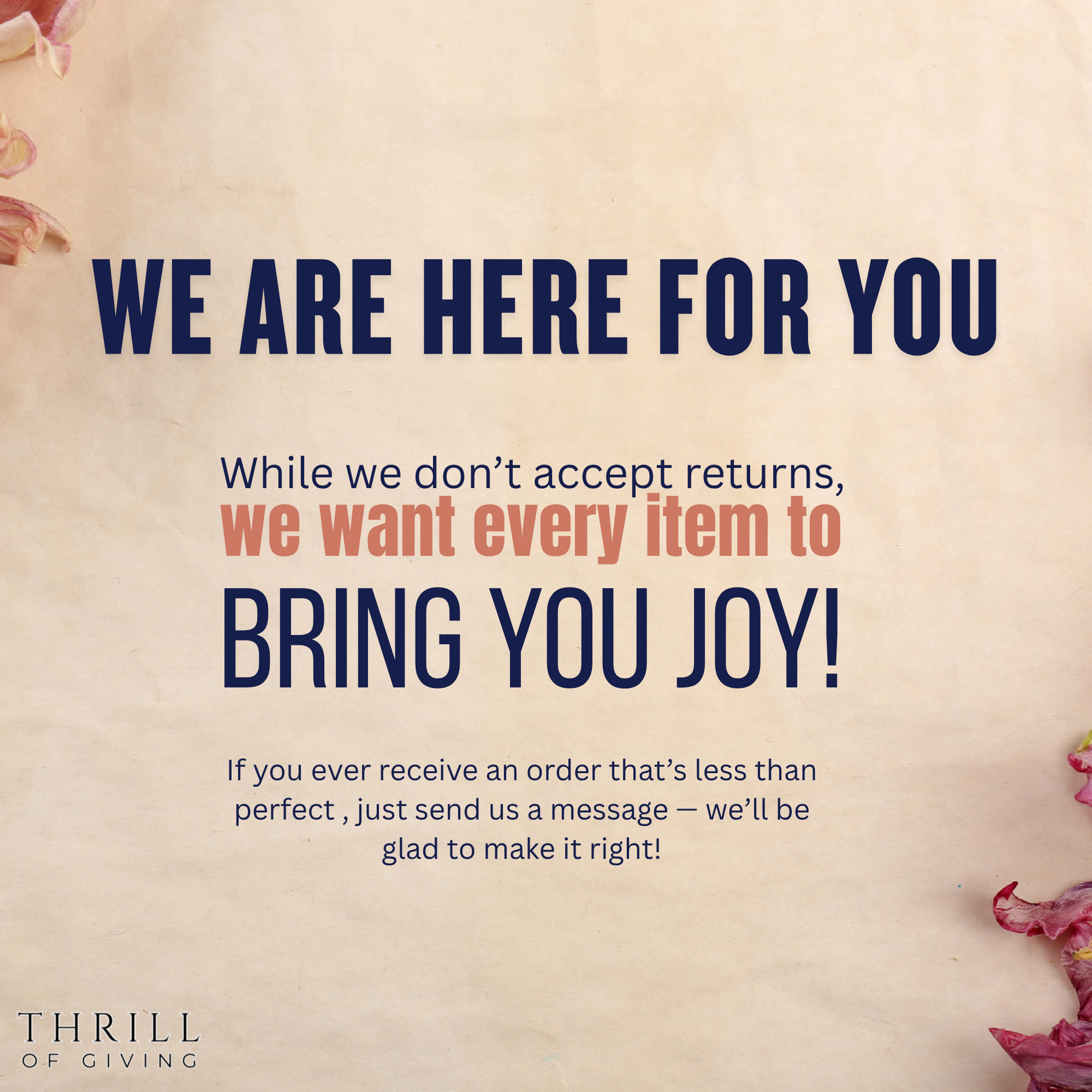 • Because our items are all made to order, the cancellations are only accepted within 1 hour of purchase.